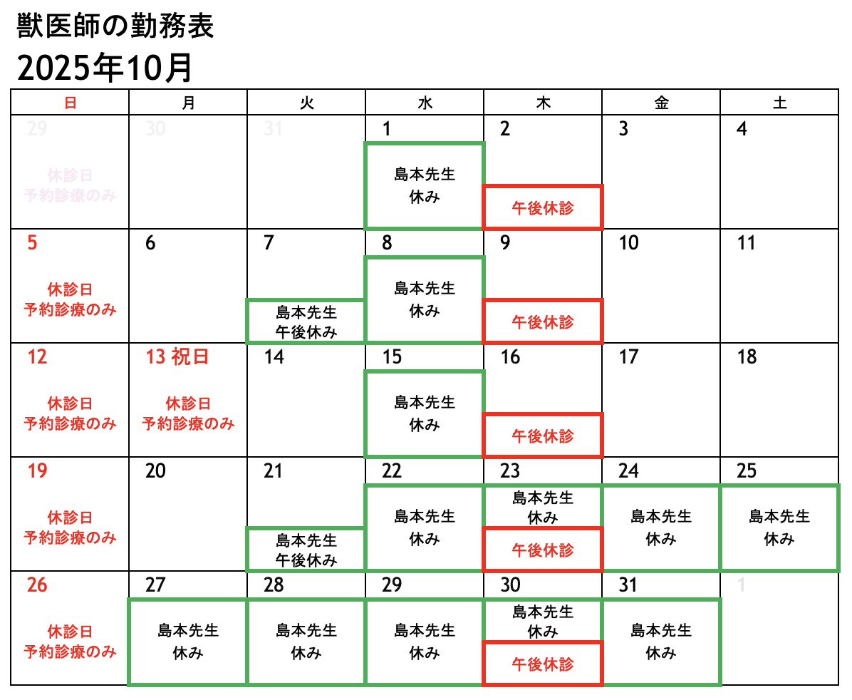 担当する獣医師の都合や他の患者様の診療内容によっては、診療の順番が前後する場合があります。何卒、ご理解くださいますようお願い申し上げます。