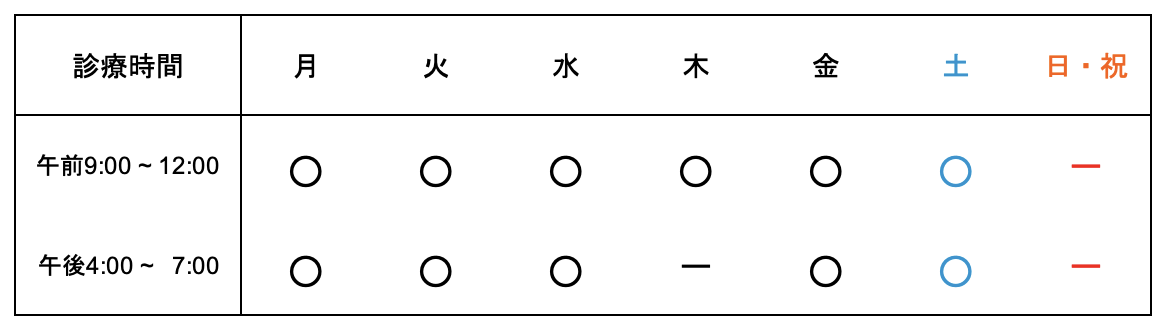 なお、木曜日の午後と平日の午後7時〜8時までは、予約診療が可能な場合があります。診療時間内にお電話でお問い合わせください。